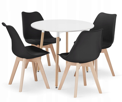 Zestaw stół okrągły KAMI 80 biały + 4 krzesła MARK czarne