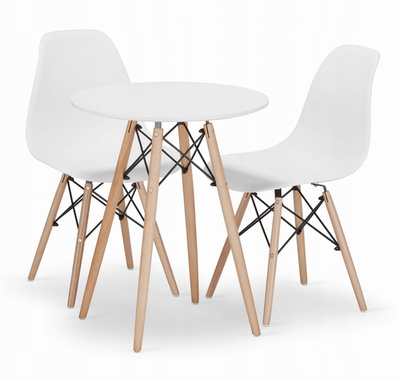 Zestaw stół okrągły TODI 60 biały + 2 krzesła OSAKA białe