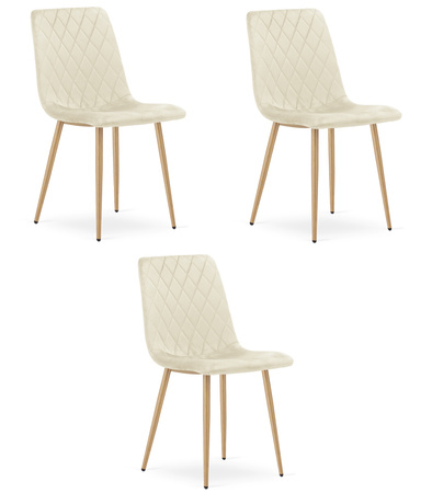 Krzesło KARA - jasny beż aksamit / nogi kolor drewna x 3