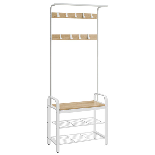 WIESZAK STOJAK NA UBRANIA Z SIEDZISKIEM I 2 PÓŁKAMI NA BUTY