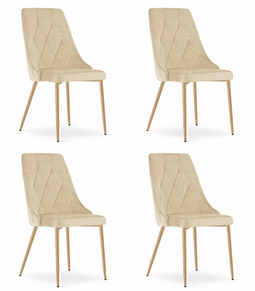 Krzesło IMOLA - jasny beż aksamit / nogi kolor drewna x 4