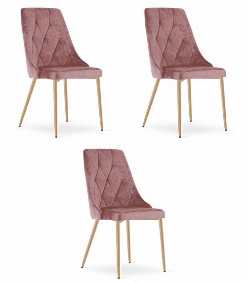 Krzesło IMOLA - różowy aksamit / nogi kolor drewna x 3