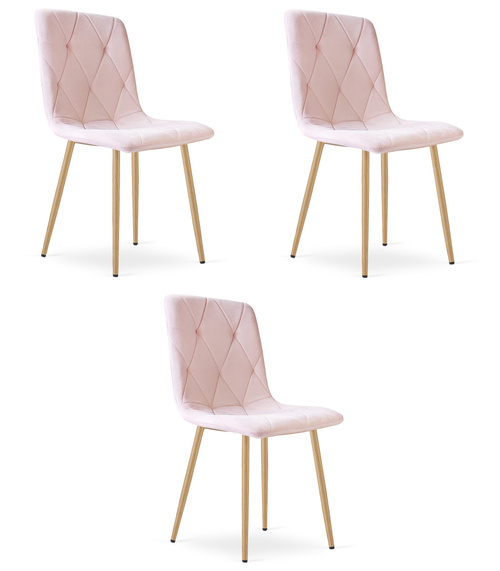 Krzesło LIBRA - jasny róż aksamit / nogi kolor drewna x 3