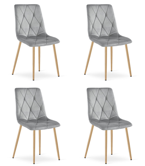 Krzesło LIBRA - jasny szary aksamit / nogi kolor drewna x 4