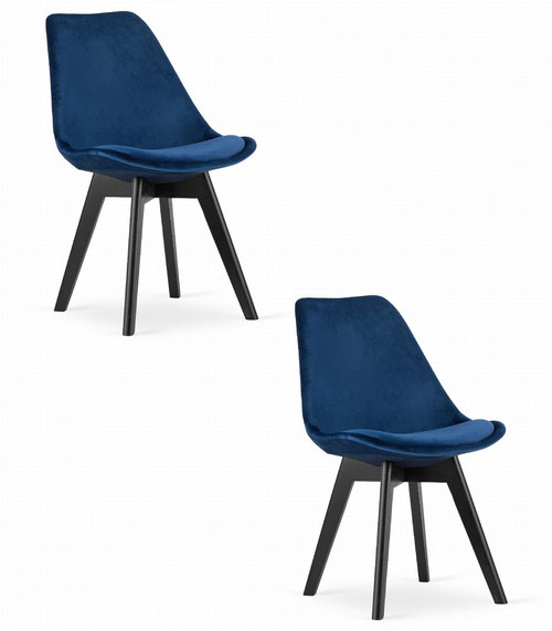Krzesło NORI - niebieski aksamit - nogi czarne x 2
