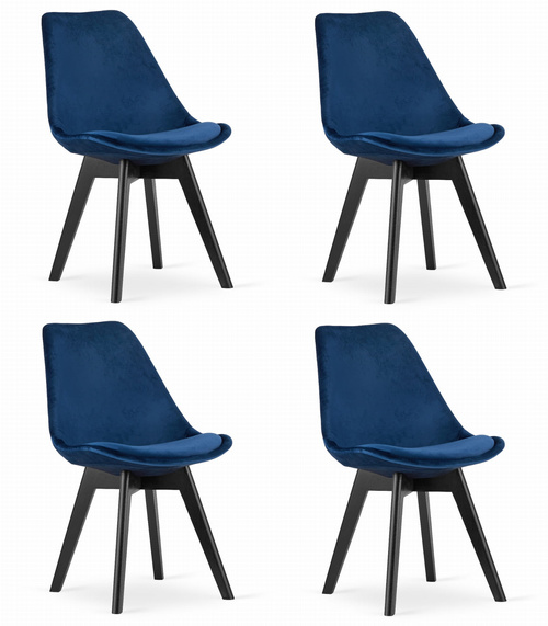 Krzesło NORI - niebieski aksamit - nogi czarne x 4