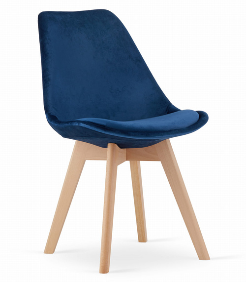 Krzesło NORI - niebieski aksamit - nogi naturalne x 1