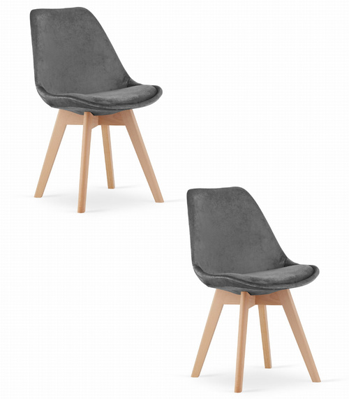 Krzesło NORI - szary ciemny aksamit - nogi naturalne x 2