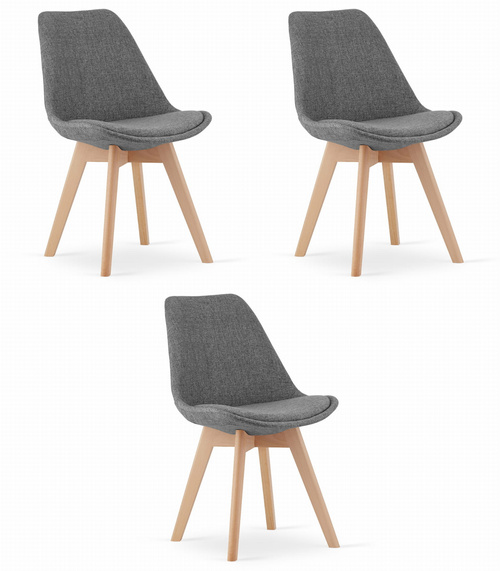 Krzesło NORI - szary materiał bez guzików - nogi naturalne x 3