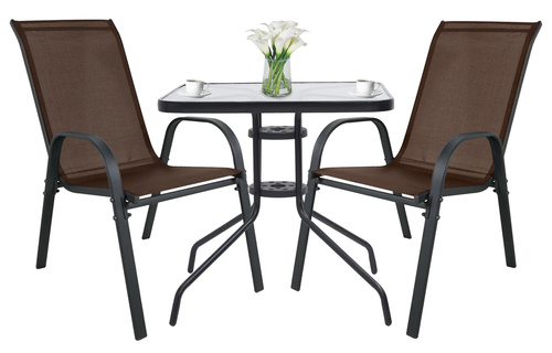 Meble Ogrodowe Stół z 2 Krzesłami - Brązowe