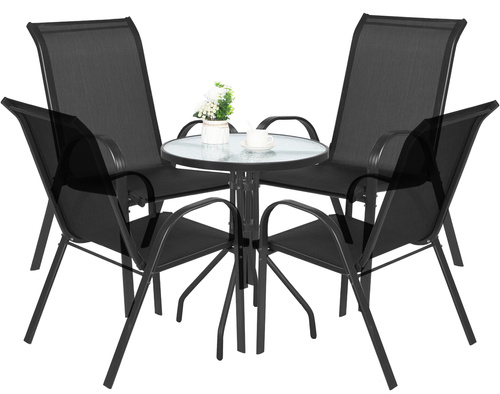 Meble Ogrodowe Stół z 4 Krzesłami - Czarne