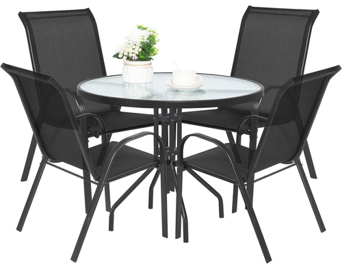Meble Ogrodowe Stół 90 cm z 4 Krzesłami - Czarne