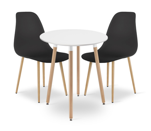 Zestaw Stół KAMI Okrągły 60cm - biały / naturalne nogi + 2 krzesła WAT czarne / nogi naturalne