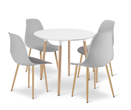 Zestaw Stół KAMI Okrągły 80cm - biały / naturalne nogi + 4 krzesła WAT szare / nogi naturalne