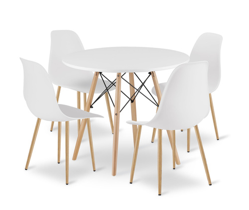 Zestaw Stół TODI Okrągły 80cm - biały + 4 krzesła WAT białe / nogi naturalne