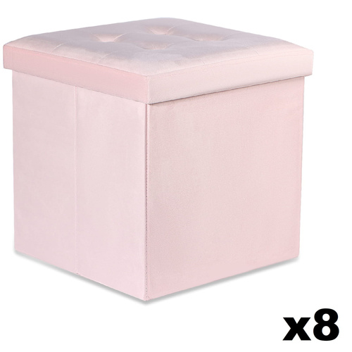 Pufa składana L z guzikami - 38x38x38cm aksamit róż x 8