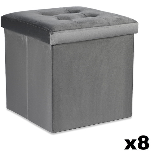 Pufa składana L z guzikami - 38x38x38cm aksamit szara x 8