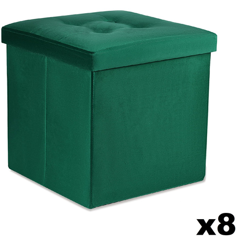 Pufa składana L z guzikami - 38x38x38cm aksamit zielona x 8