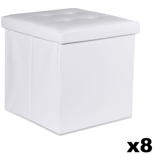 Pufa składana L z guzikami - 38x38x38cm ekoskóra biała x 8