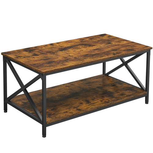 Stolik wykonany w stylu rustykalnym, czyli odpowiednio stylizowanym na wiekowy. Odpowiednie wymiary stolika zapewniają wystarczająco dużo miejsca na filiżanki do kawy, laptop, pilot do telewizora oraz tacę z przekąskami.