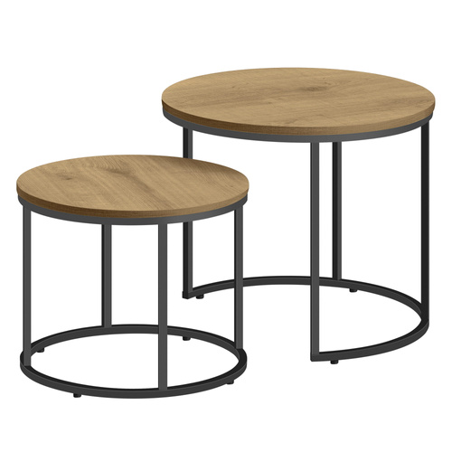 Stolik kawowy okrągły 2szt - dąb / nogi czarne